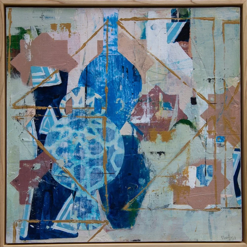 Nessa's past experience working with Sculptural Fibre art mediums continue to inform the many layered surfaces of her paintings. Nessa has exhibited in group and solo shows in Ireland, Finland, Spain, Sao Paulo - Brazil and Morocco.