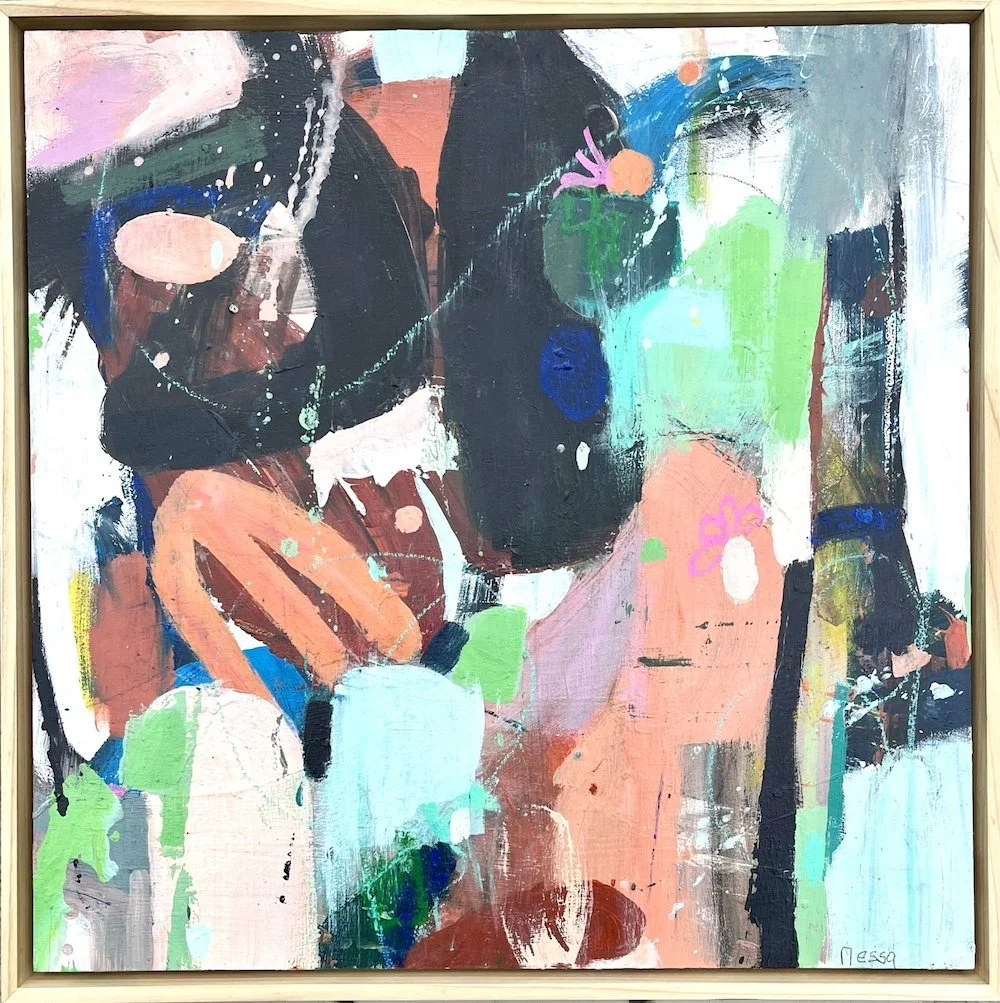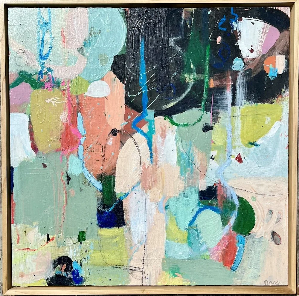 Nessa is a contemporary abstract painter and teacher living in county Wicklow, Ireland. She paints to be in that state where she feels wide eyed with curiosity, a delightful place of freedom.